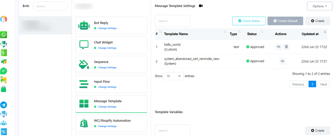 - Go to WhizChat Dashboard and navigate to the Bot manager section.